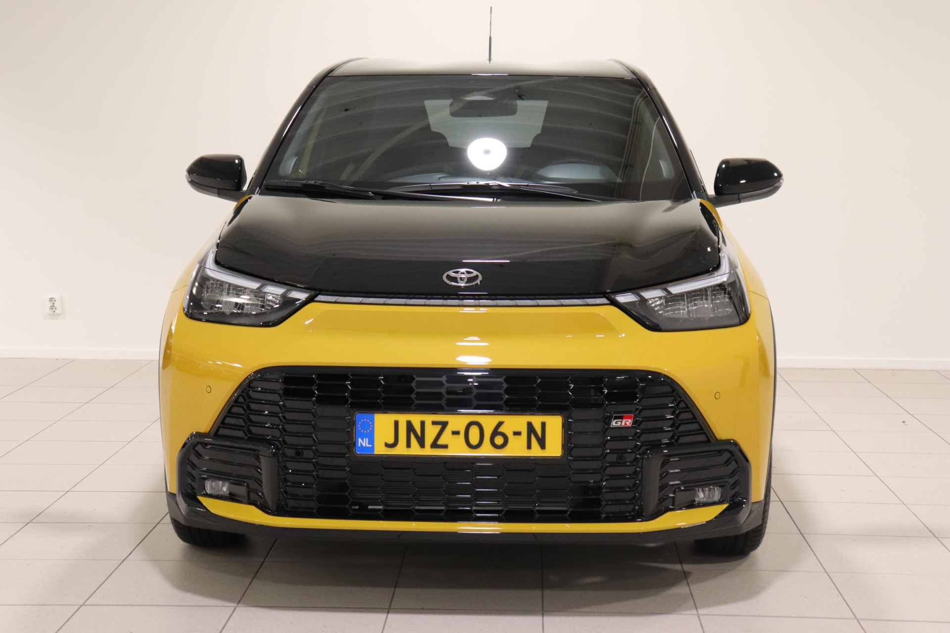 Nieuw in onze demovloot deze mooie Toyota Aygo X Hybrid 115 GR-Sport in de leuke combinatie: Mustard Yellow / Zwart dak.
