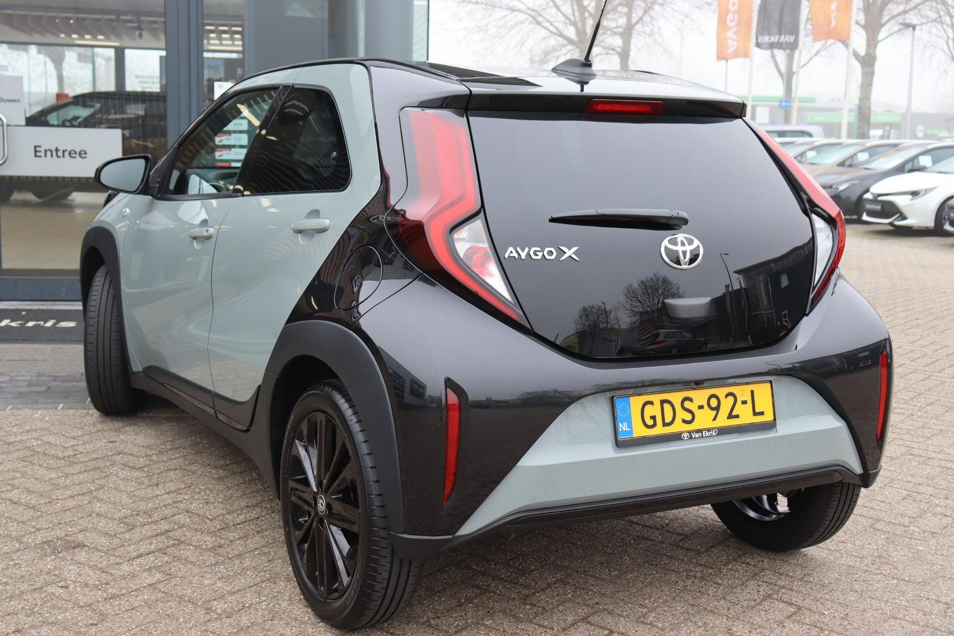 Elegante Ayo-X Pulse in de kleur Terragon met zwart dak/achterzijde. Deze Aygo-X is voorzien van Climate control, parkeercamera, getint glas achter, adaptieve cruise control en 18 ich hoogglans zwarte lichtmetalen velgen. U bent welkom voor een proefrit!