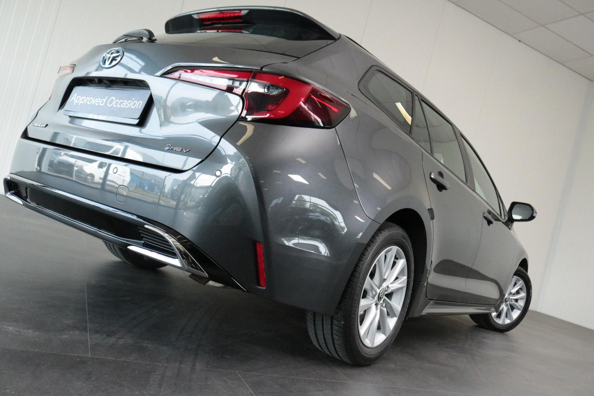 Mooie jong gebruikte Toyota Corolla Touring Sports Hybrid 140 Dynamic in de kleur Ash Grey metallic. De Corolla is royaal uitgevoerd en is onder andere voorzien van: stuur en stoelverwarming, voorruitverwarming (ruitenwissergedeelte), parkeersensoren voor en achter, keyless entry, koplampsproeiers, volledig digitaal display, draadloze telefoonlader, android auto, apple carplay, parkeercamera en meer!!