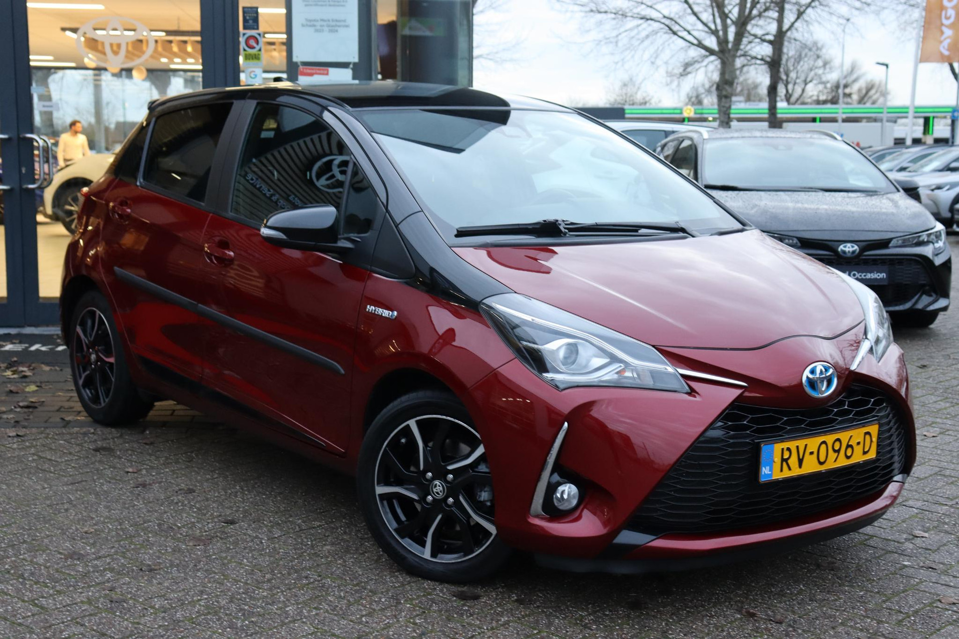Opvallende Yaris 1.5 Hybrid Bi-Tone in de kleur "Lava Red" metallic. De auto is dealer onderhouden en voorzien van onder andere: 16" inch lichtmetalen velgen, achteruitrijcamera, Cruise Control, Climate Control, Toyota Safety Sense, achteruitrijcamera, bluetooth, radio en nog veel meer!