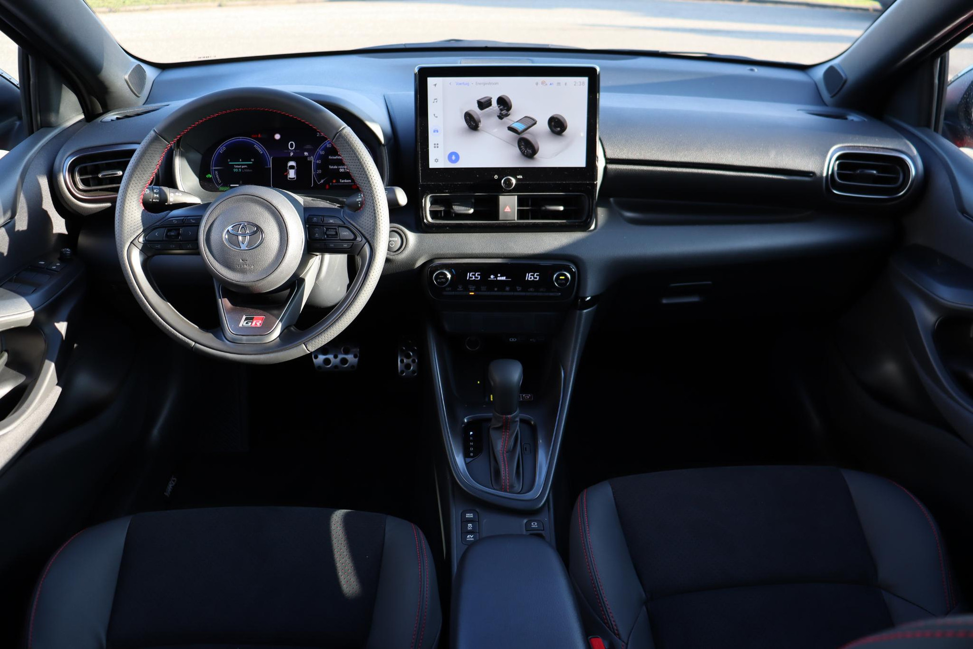 Nieuw bij ons in de showroom deze prachtige Yaris 1.5 Hybrid 130PK GR Sport! Deze Yaris is in de prachtige kleur Emotional Red Metallic staat op prachtige 18" Lichtmetalen velgen en  is rijk uitgerust. Zo heeft deze Yaris natuurlijk de GR Kuipstoelen, Het GR Onderstel, Apple Carplay, Android auto, Climate Control, parkeercamera, Keyless entry, met startknop, verwarmbare buitenspiegels en nog veel meer!