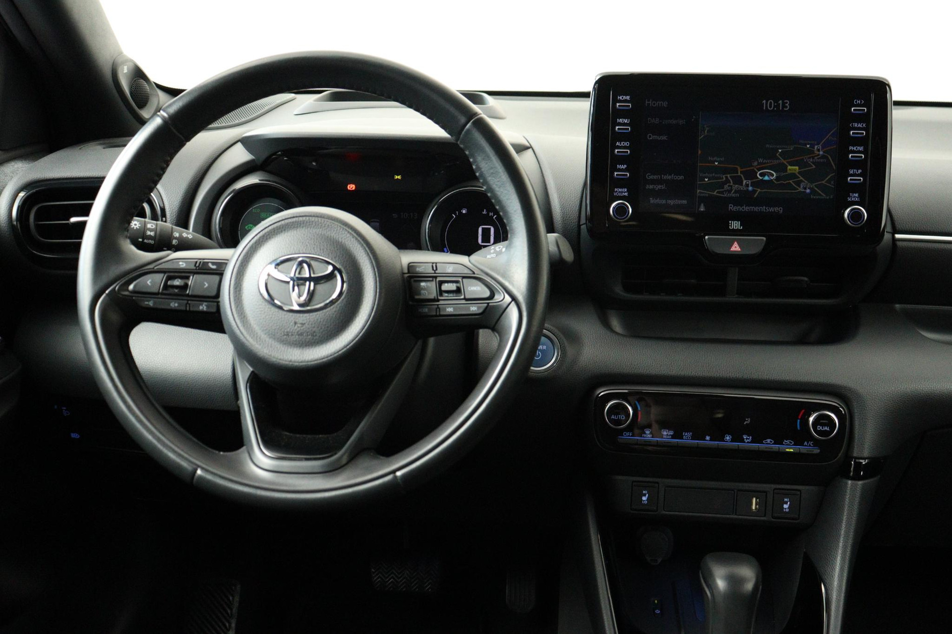 Een van de meest compleetste en de leukste Yaris uit onze voorraad! Deze Yaris Hybrid Launch is voorzien van JBL audio, Head up display, Blind spot monitor, parkeersensoren voor en achter, half lederen bekleding, adaptive cruise control, android auto, apple carplay, 17 inch lichtmetalen velgen, stoelverwarming, keyless entry en meer!